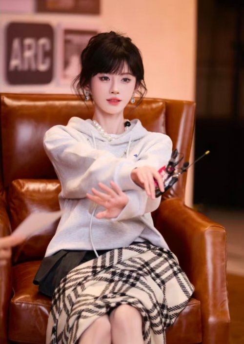 9月12日MAC品牌直播中,鞠婧祎的亮相堪称“颜值教科书”——黑色皮质短夹克搭配高腰短裙的酷飒造型,将高马尾的利落与金属玫瑰配饰的冷艳完美融合,颠覆以往柔美形象的同时,更让全网聚焦于她经得住30厘米怼脸镜头考验的绝佳肤质:皮肤通透如琉璃,不见毛孔与细纹,连光影掠过的下颌线处都透着自然光泽,被网友惊呼“自带柔光滤镜,生图比精修更能打”。