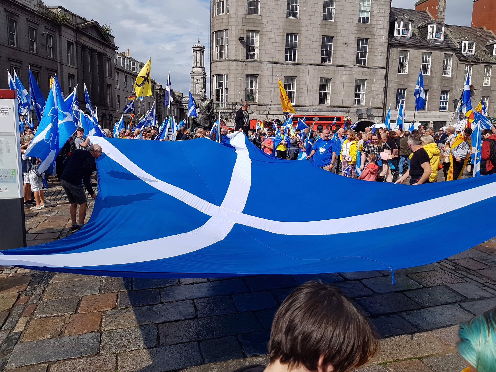 随着民调中支持独立的苏格兰人首次超过半数,成千上万的苏格兰民众在8月17日下午走上阿伯丁街头,呼吁苏格兰脱离英国,获得独立。