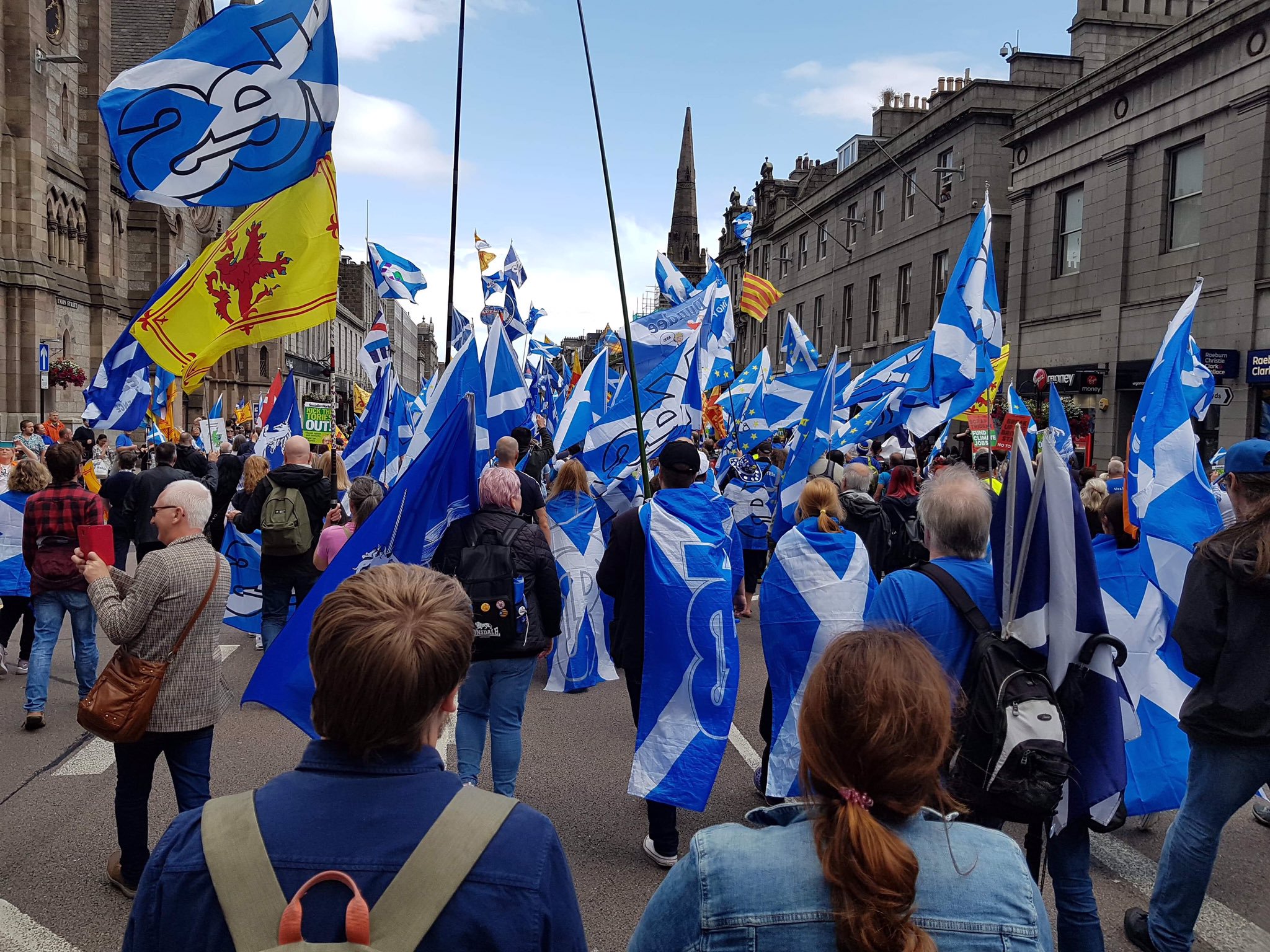 这次游行从当天下午1点30分开始,一群骑自行车的人高举象征着苏格兰的“圣安得烈十字旗”在阿伯丁的主干道联盟大街(Union Street)上骑行,随后步行者在风笛和鼓声中出发。