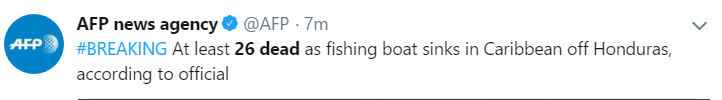 综合法新社、路透社等外媒消息,洪都拉斯武装部队称,该国大西洋沿岸一艘渔船发生沉没事故,造成至少26人死亡。
