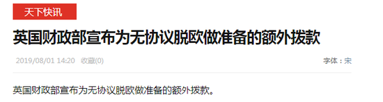 英国财政部宣布为无协议脱欧做准备的额外拨款。