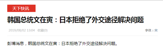 彭博消息,韩国总统文在寅:日本拒绝了外交途径解决问题。