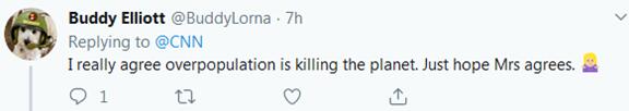 有网友表示,反思地球资源与环境问题不应在于限制人口数量:“不是他需要停止生孩子,而是那些负担不起养孩子的人,他们才是世界未来的问题所在”。