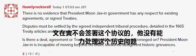 不过,日媒这篇报道下面,网民对于来自华盛顿的调停并不乐观,认为这个“中止协议”建议“没有意义”,并不能解决两国之间一直存在的历史争端。