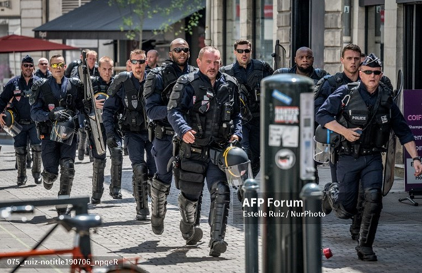 7月6日,法国防暴警察对“黄背心”运动严阵以待。