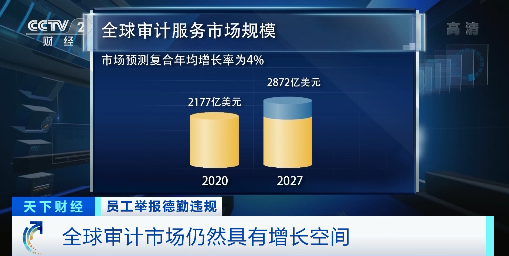 目前,审计市场仍然是具有潜力的增长市场。据估计,全球审计服务市场规模在2020年约为2177亿美元(约合人民币1.4万亿元),到2027年有望达到2872亿(约合人民币1.85万亿元)美元,期间复合年均增长率为4%。