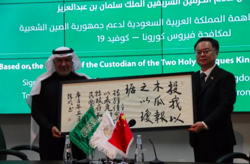沙特国王萨勒曼日前主持召开内阁会议,强调沙方相信中国有能力战胜疫情,并指示向中国提供医疗防护物资。随后,中国驻沙特使馆和萨勒曼国王人道救济中心举行签字仪式。沙特代表在仪式上收到中方送出的特殊礼物——两幅中文书法作品,分别取自《诗经》“投我以木瓜,报之以琼琚”和《古兰经》“真主是喜爱行善者的”。
