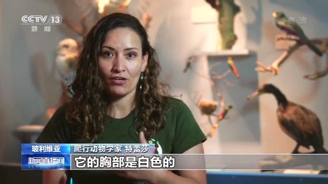 爬行动物学家 特蕾莎:我们收到了一只非常特别的蛙——玻璃蛙。这类蛙的主要特征之一是皮肤透明,所以我们可以直接看到它们的器官。具体来说,它的身体一半是透明的,它的胸部是白色的,身体下半部分是透明的,两边也是透明的。它们还有一个特点,它们的骨头是蓝绿色的。