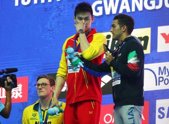 7月21日,中国游泳运动员孙杨在2019国际泳联世锦赛男子400米自由泳决赛中再夺冠军。但在颁奖仪式上,获得第二的澳大利亚选手霍顿却以“孙杨涉嫌服药”为由不肯站上领奖台。