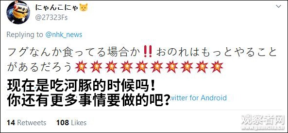 另一方面,也有部分网民不以为然,觉得食用河豚是日本的传统,吃就吃了没什么大不了。